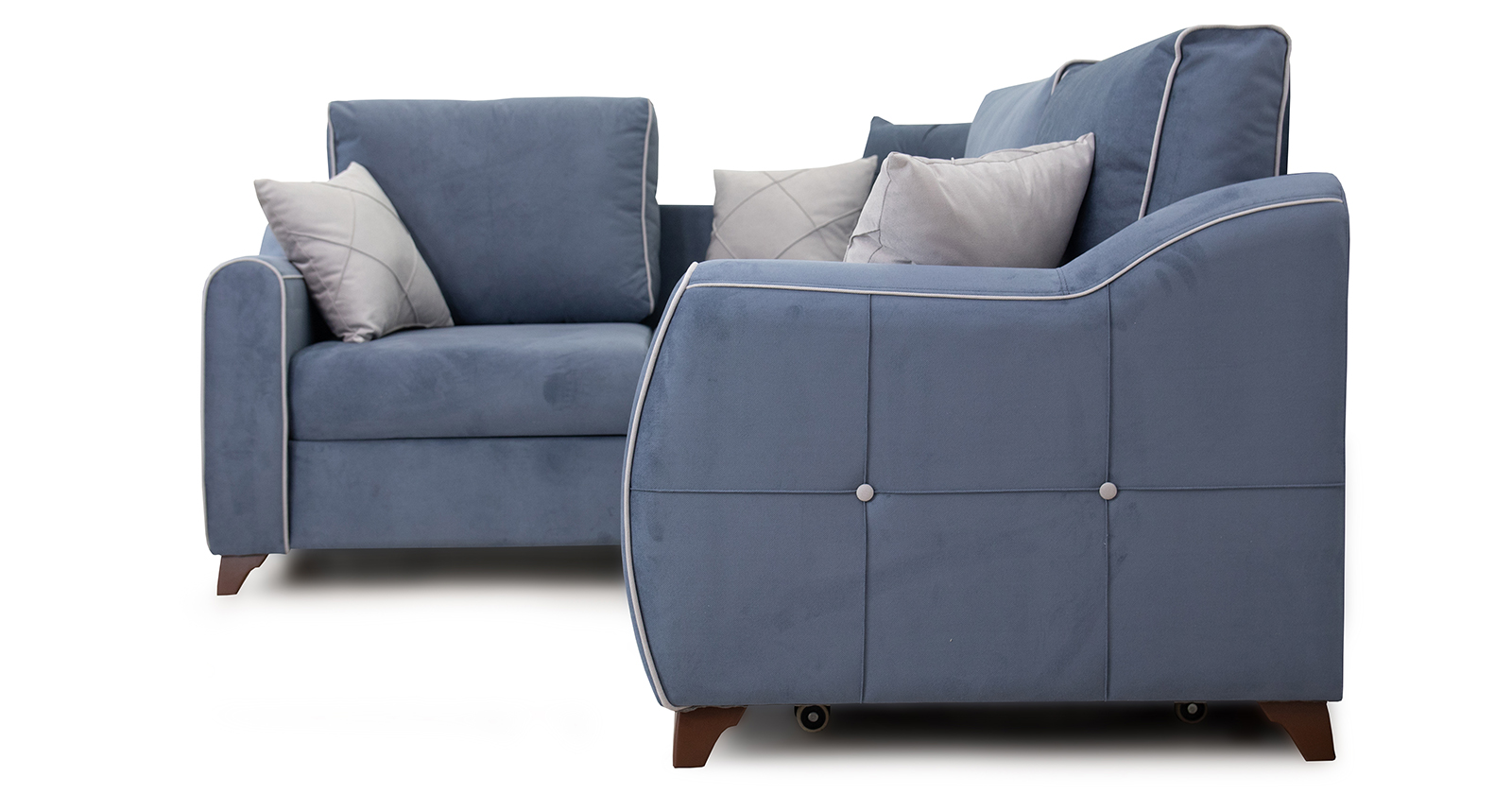 Диван-кровать угловой Тэдди 1504 композиция 2, букле Pique 009 синий, модульная система, сборка на любую сторону