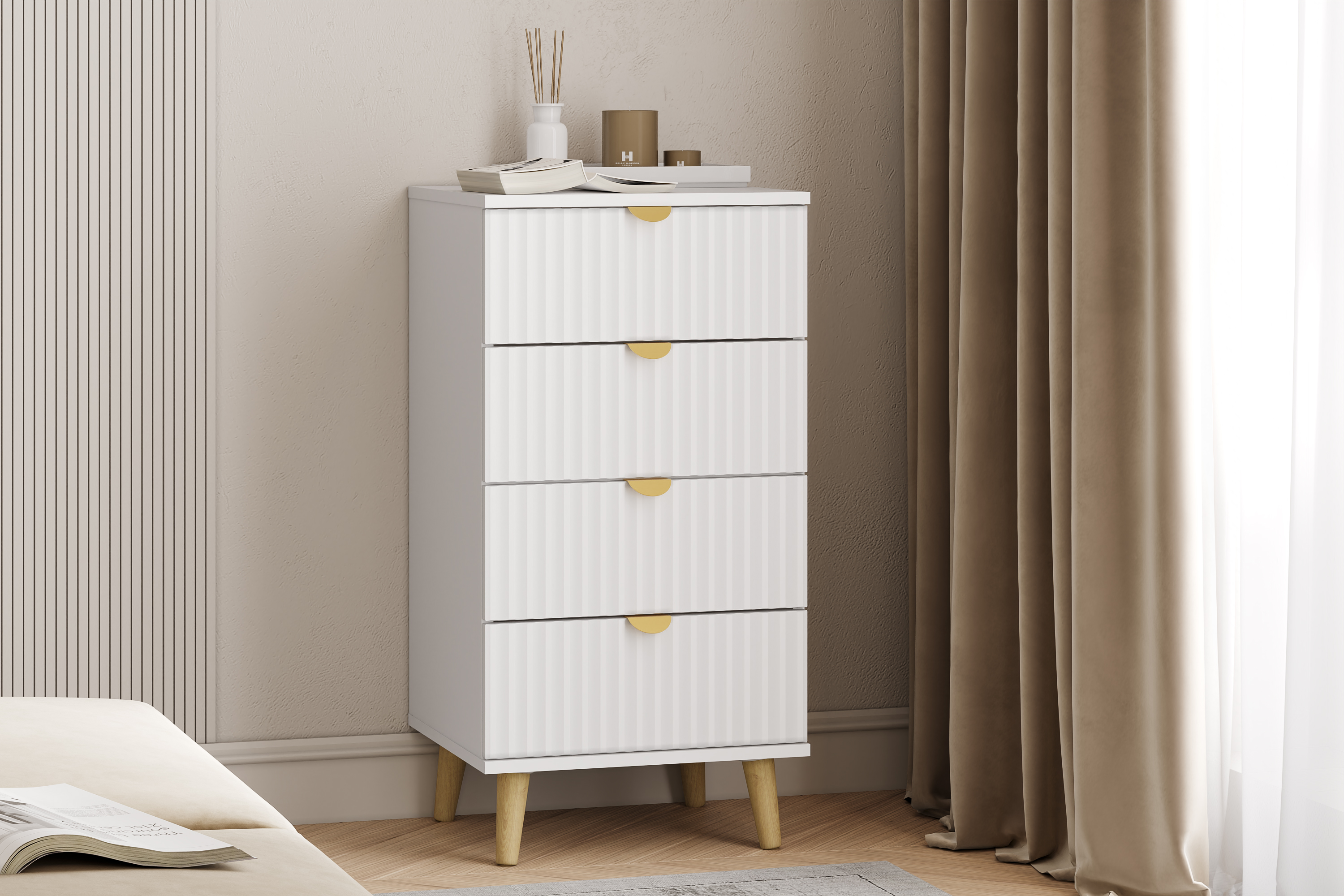 Представляет собой каркас из панелей ЛДСП с четырьмя выдвижными ящиками.