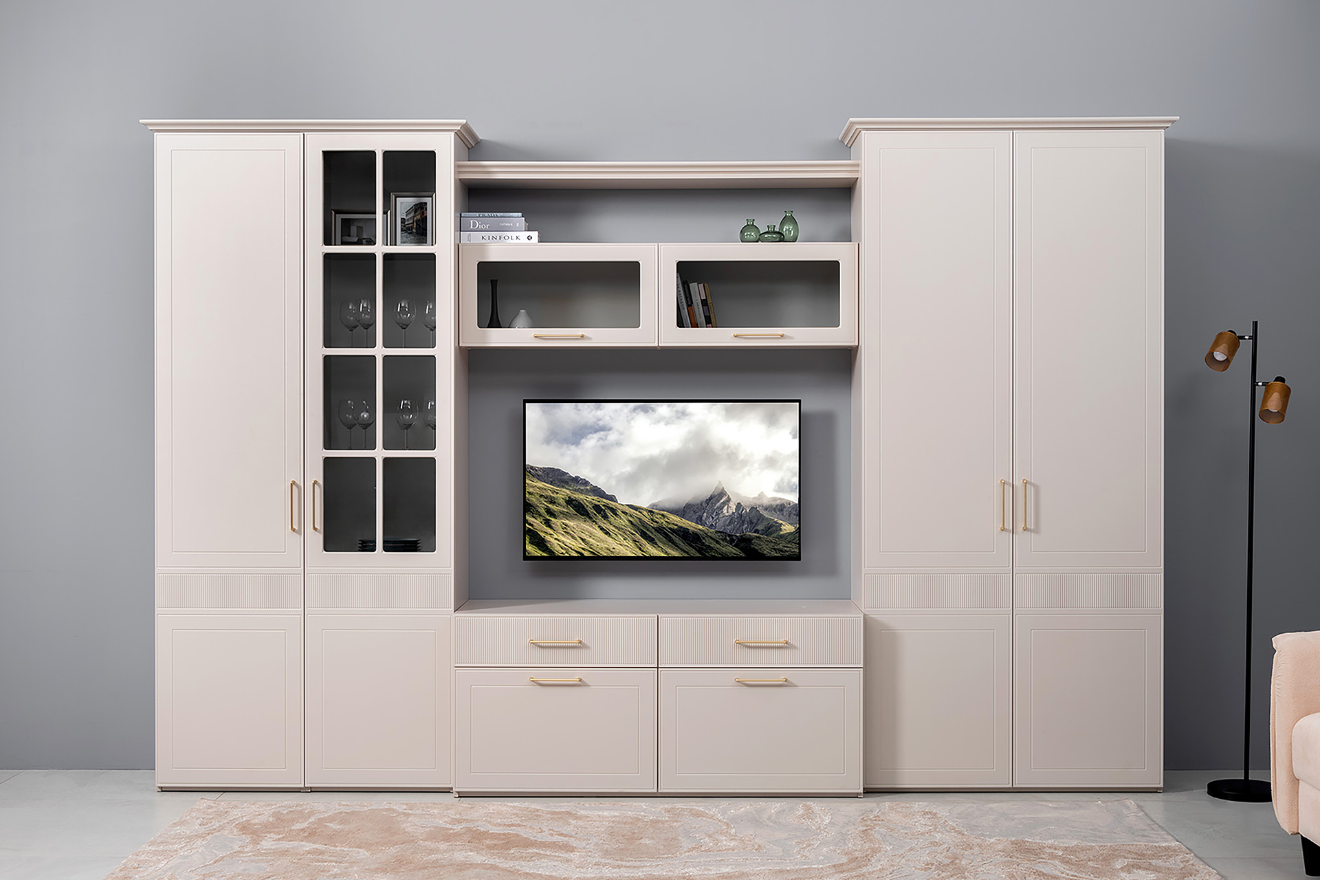 Тумба под ТВ Ричфорд 16.61 кашемир 5981 BS, моно керамика D166-2 ПВХ, белый PE шагрень