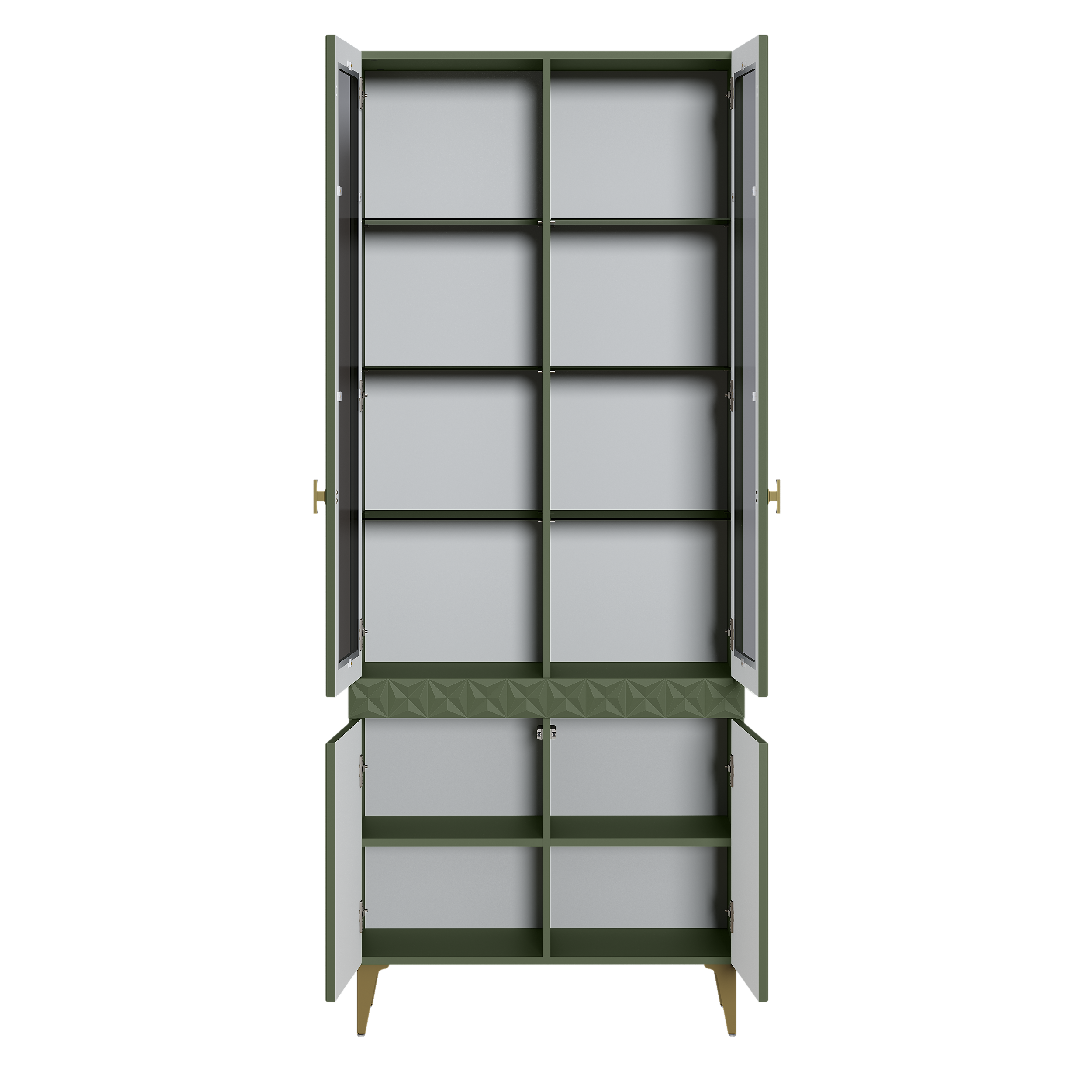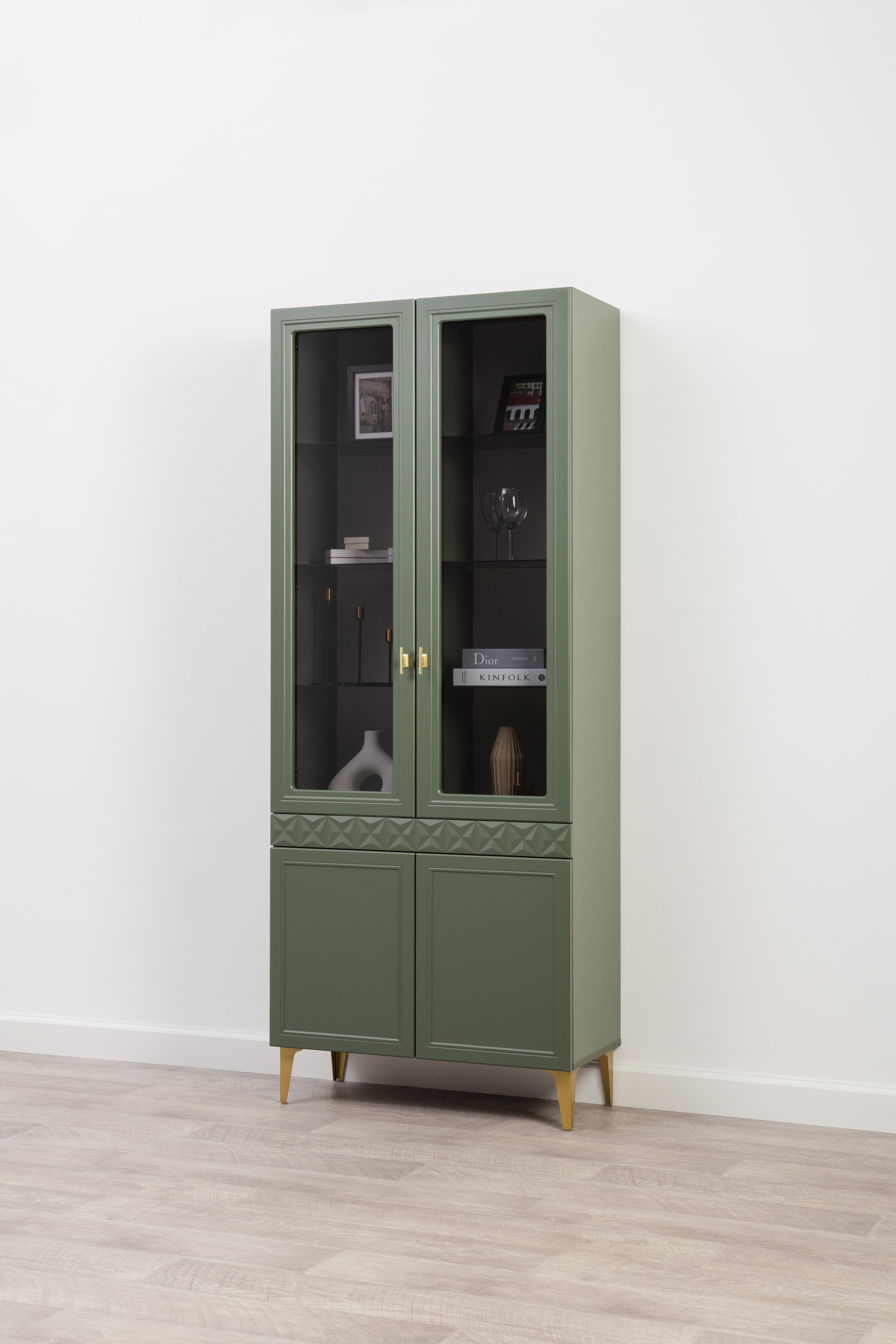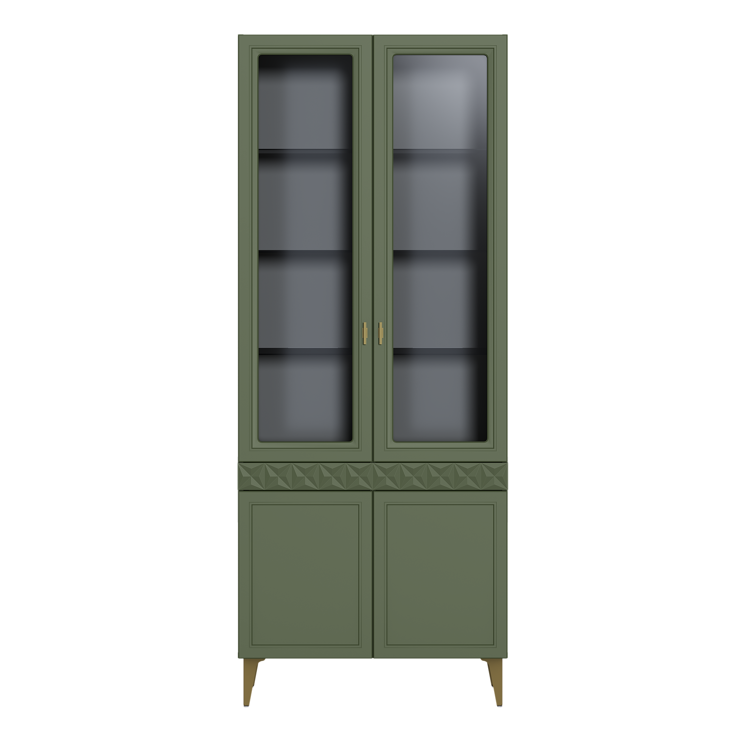Шкаф-витрина Марион 16.397.02 дымчатый зеленый K521, олива шагрень AG 1050 ПВХ