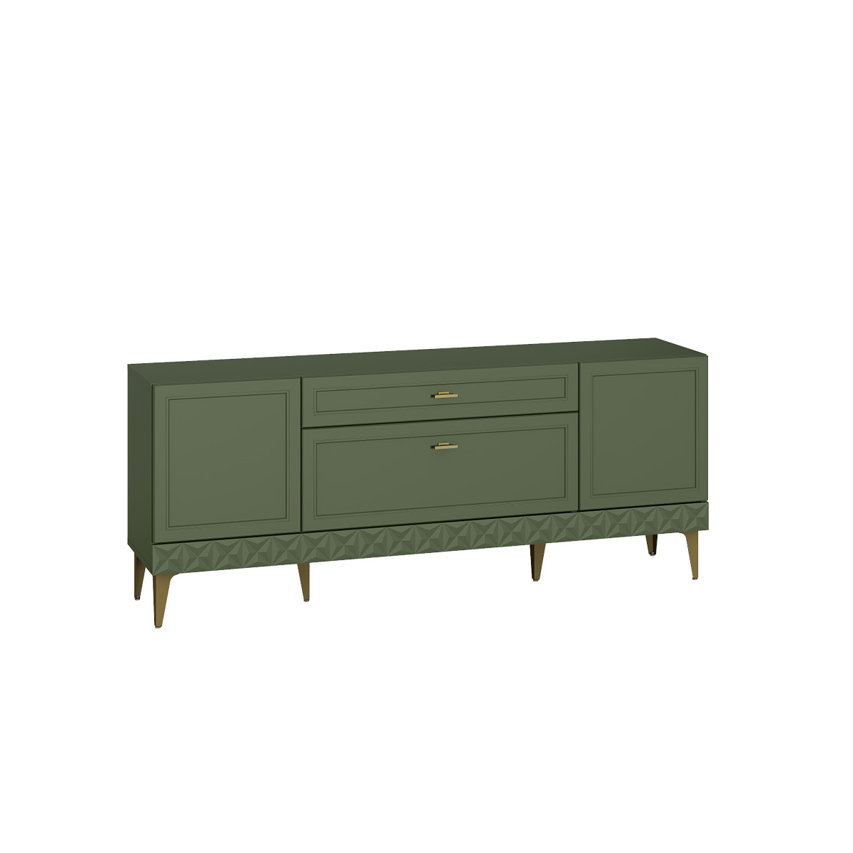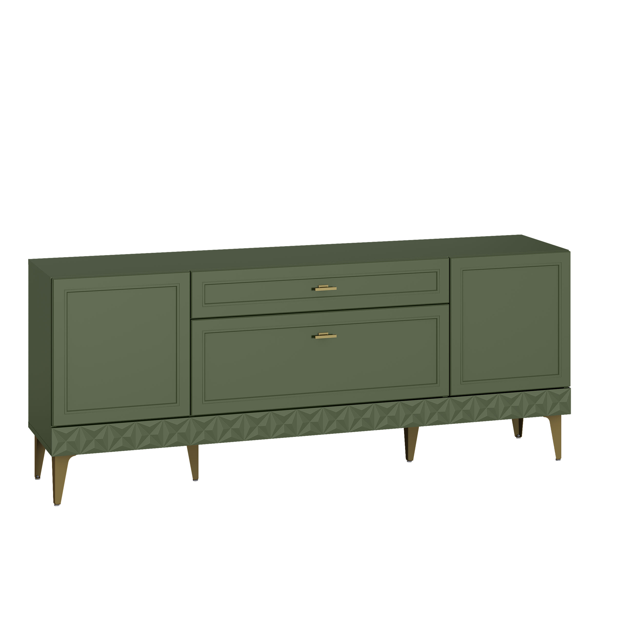 Изящные линии, глубокая фрезеровка фасадов из МДФ и благородные оттенки. Утончённая «Слоновая кость» и изысканная «Олива Шагрень» с глубоким зелёным тоном — создают атмосферу уюта, тепла и благородства. Металлические ручки и опоры золотого цвета придают мебели утончённый блеск, а петли и направляющие с доводчиками обеспечивают плавное и бесшумное закрытие фасадов.